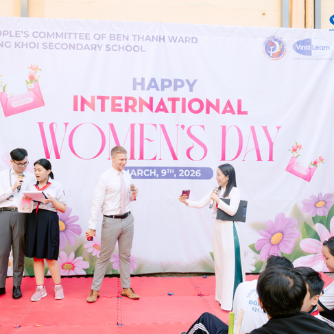On the morning of March 9th, Dong Khoi Secondary School’s courtyard was transformed into a vibrant hub of excitement. To celebrate International Women’s Day, the school, in collaboration with Vinalearn English Center, hosted an engaging English-themed assembly designed to boost students' linguistic confidence while honoring the invaluable contributions of women.